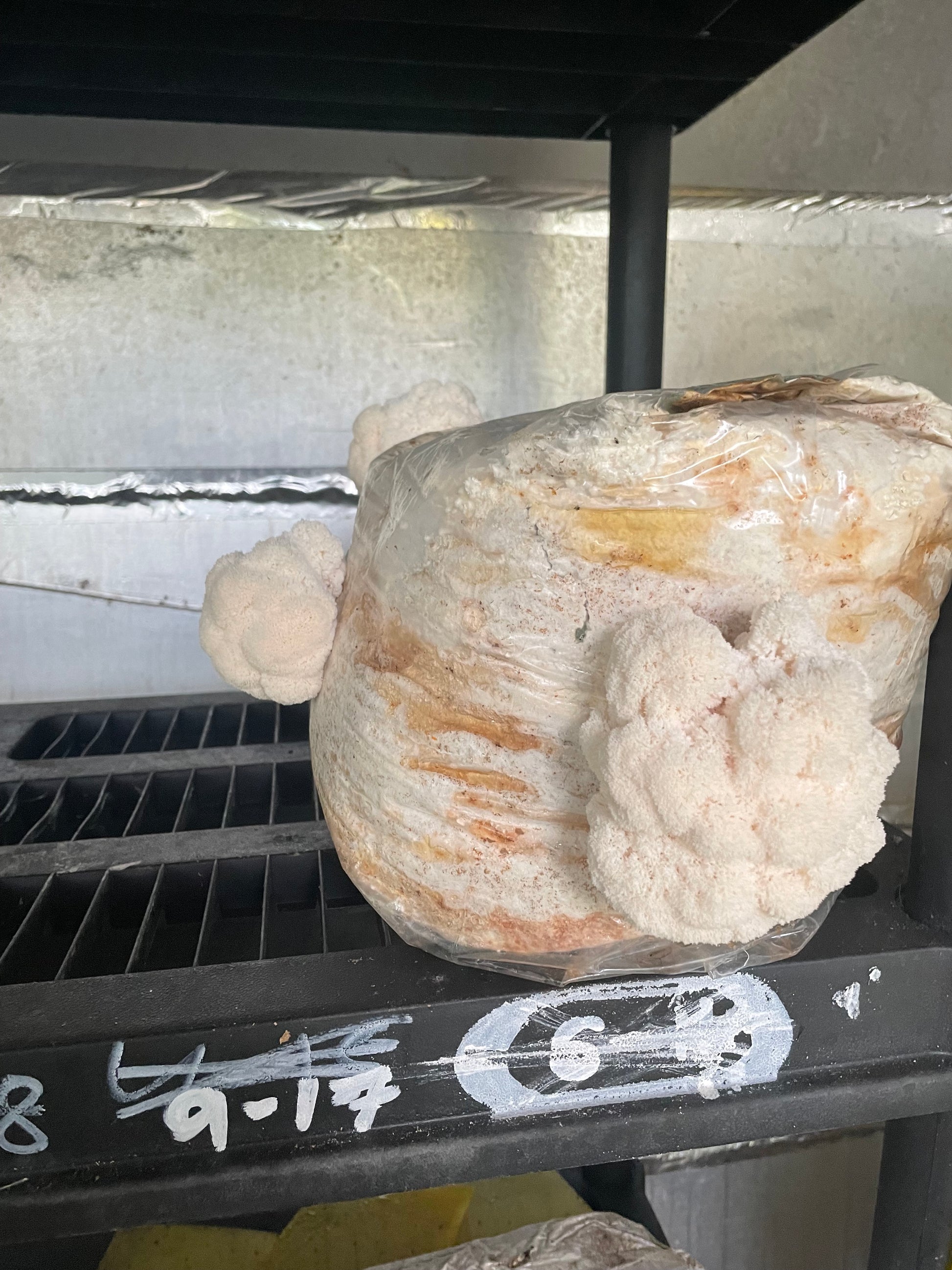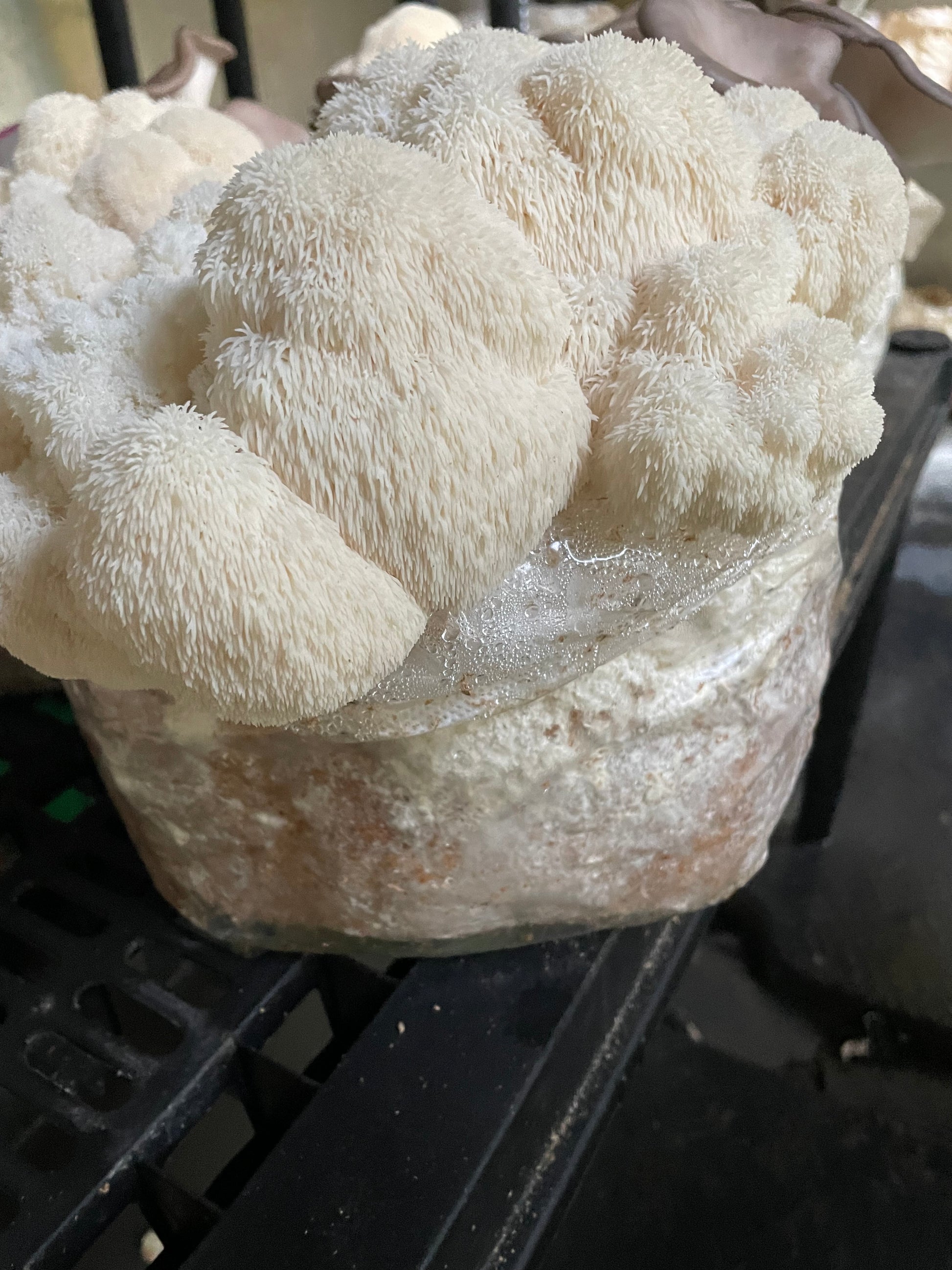 Description: A distinctive white mushroom that forms giant pompoms of solid mushroom flesh, adorned with spore-bearing spines. Lion's mane is almost as simple to grow as blue oyster, yields well, and is renowned for both its medicinal and culinary properties. Lion's mane has a mild neutral taste, slowly developing a delicious lobster flavor over it's long life in the fridge. Lion's mane takes longer to grow compared to oyster mushrooms, and is less substrate adaptive requiring a hardwood substrate, but it will form perfect fruitbodies over a relatively wide range of temperatures.